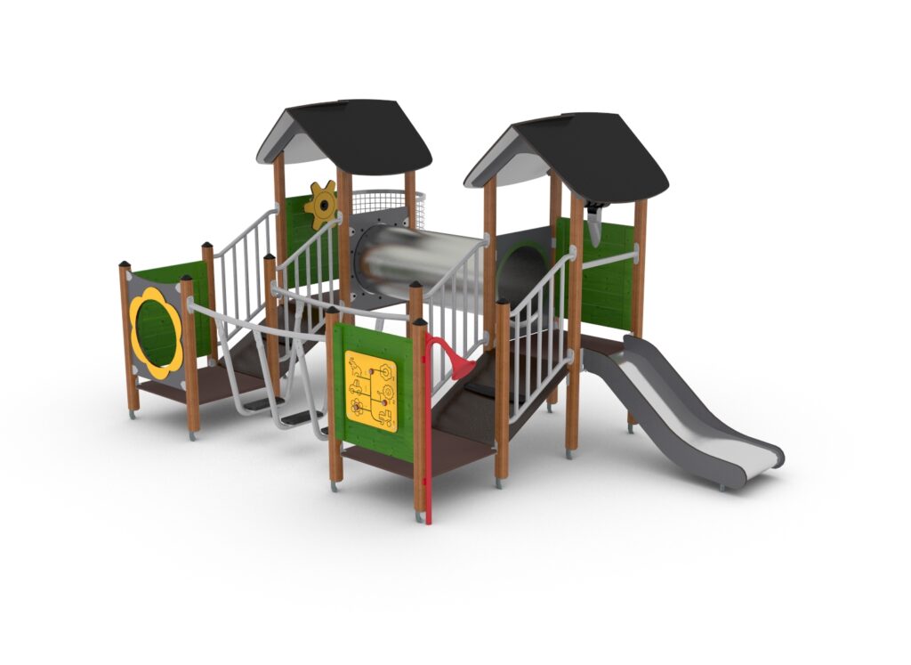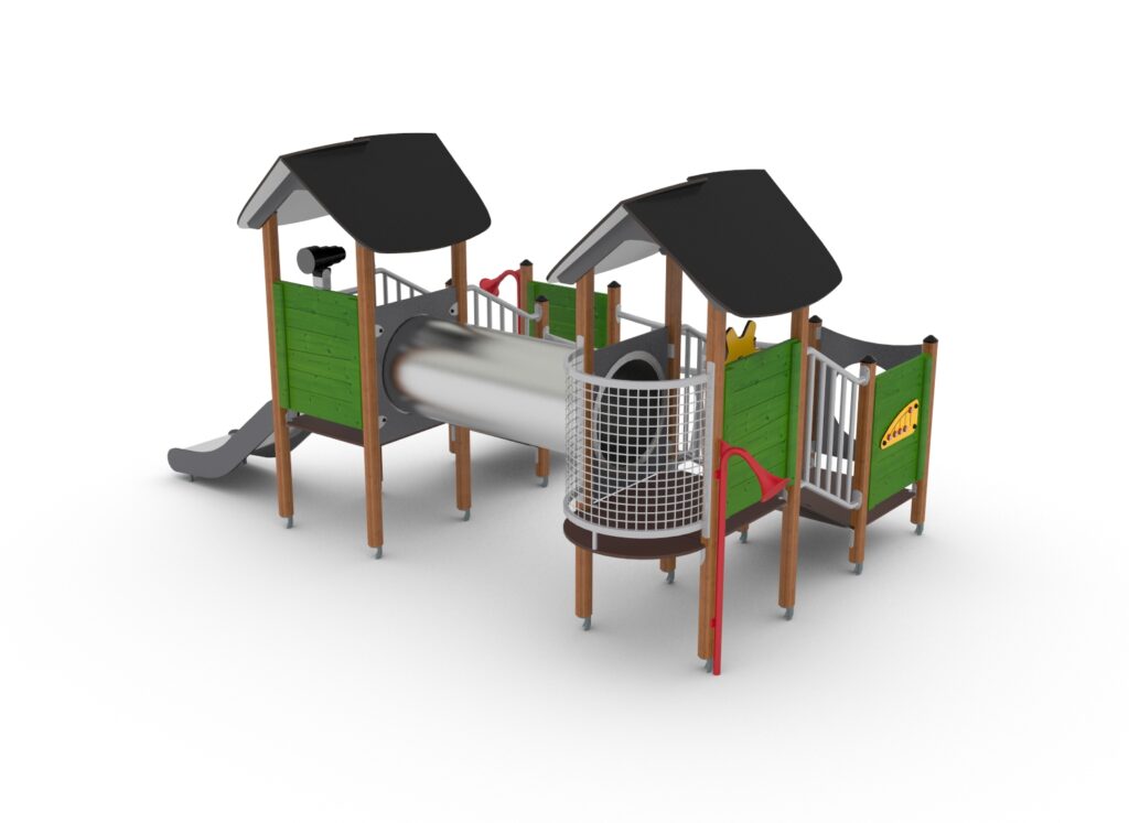 Дети могут преодолевать различные препятствия, ползать по трубе и кататься с горки, развивая физическую активность. Для развития воображения в комплексе есть парная игра, говорящая труба, штурвал и подзорная труба.
