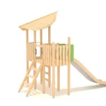 Этот игровой комплекс включает в себя одну крытую башню высотой 1470 мм, на которую можно подняться по двум разным лестницам. Захватывающая длинная горка и пожарная лестница подарят детям незабываемые впечатления. Изготовлено из сосны